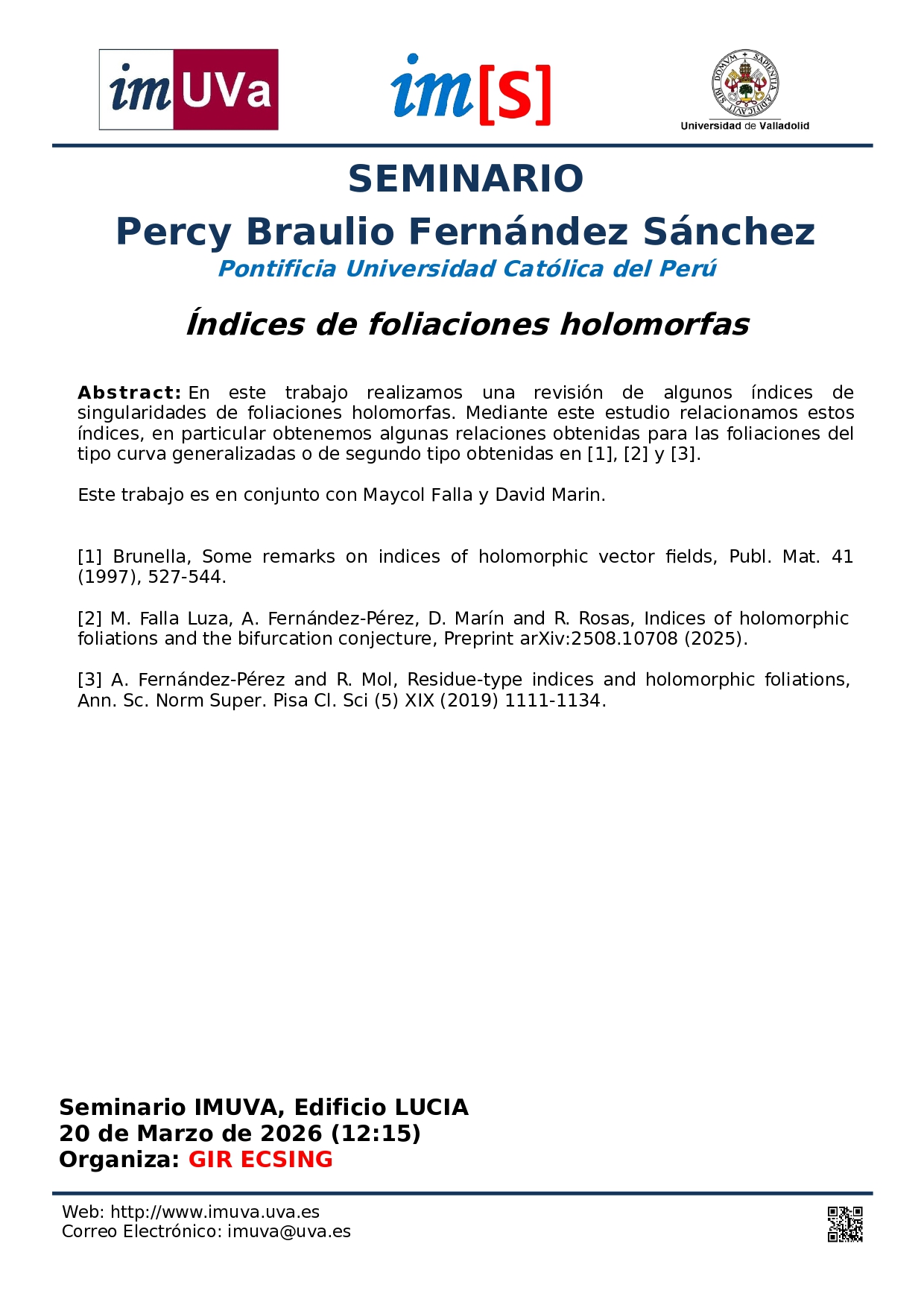 Título: "Índices de foliaciones holomorfas"